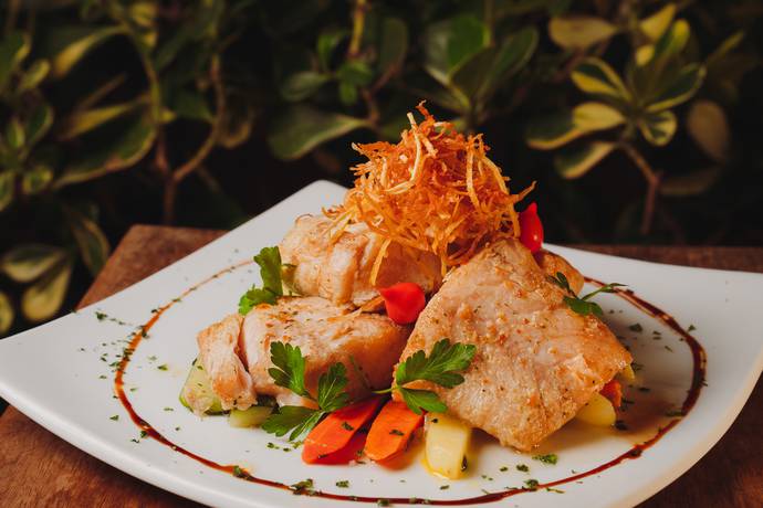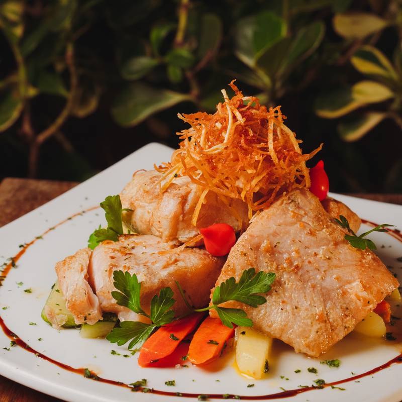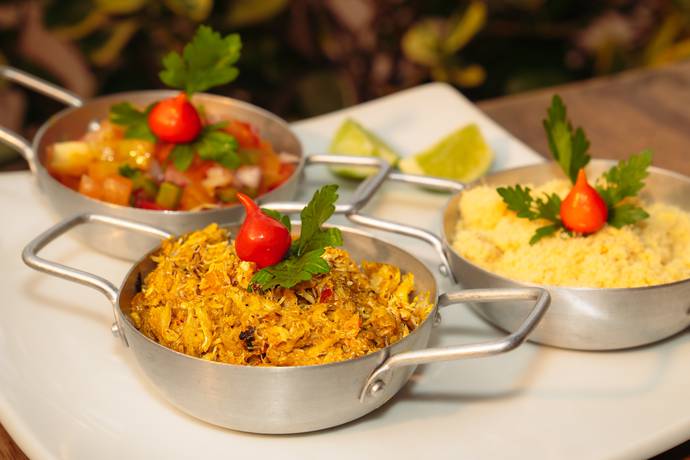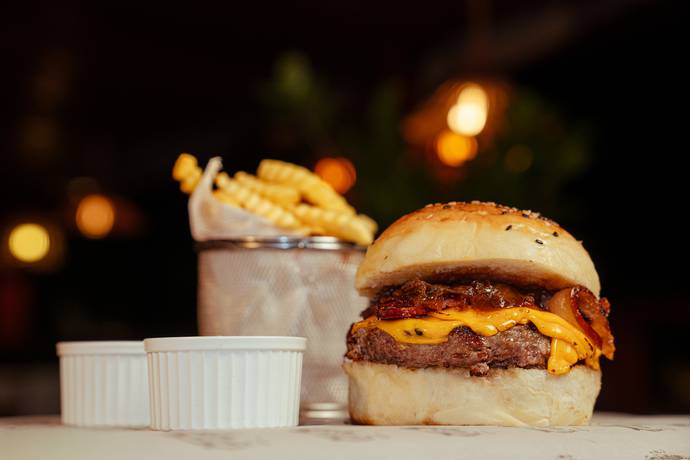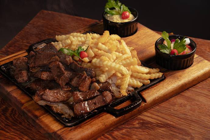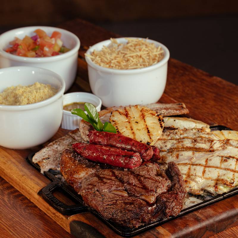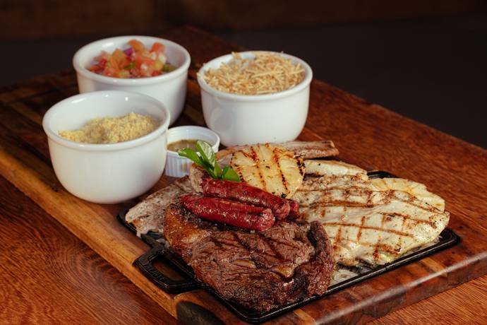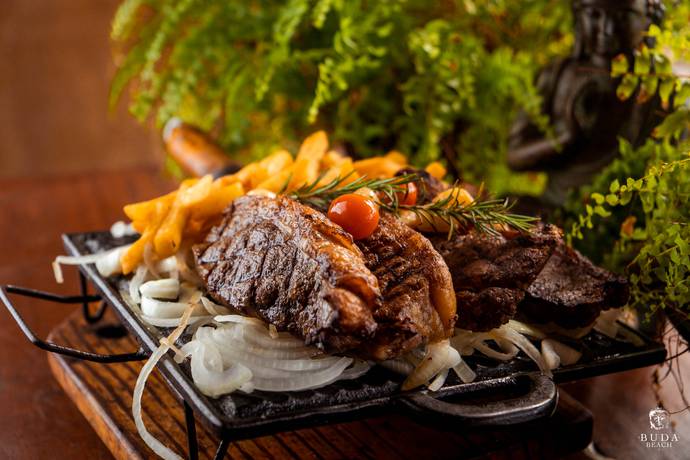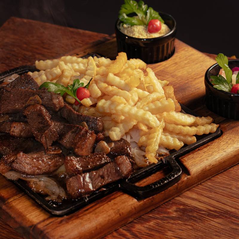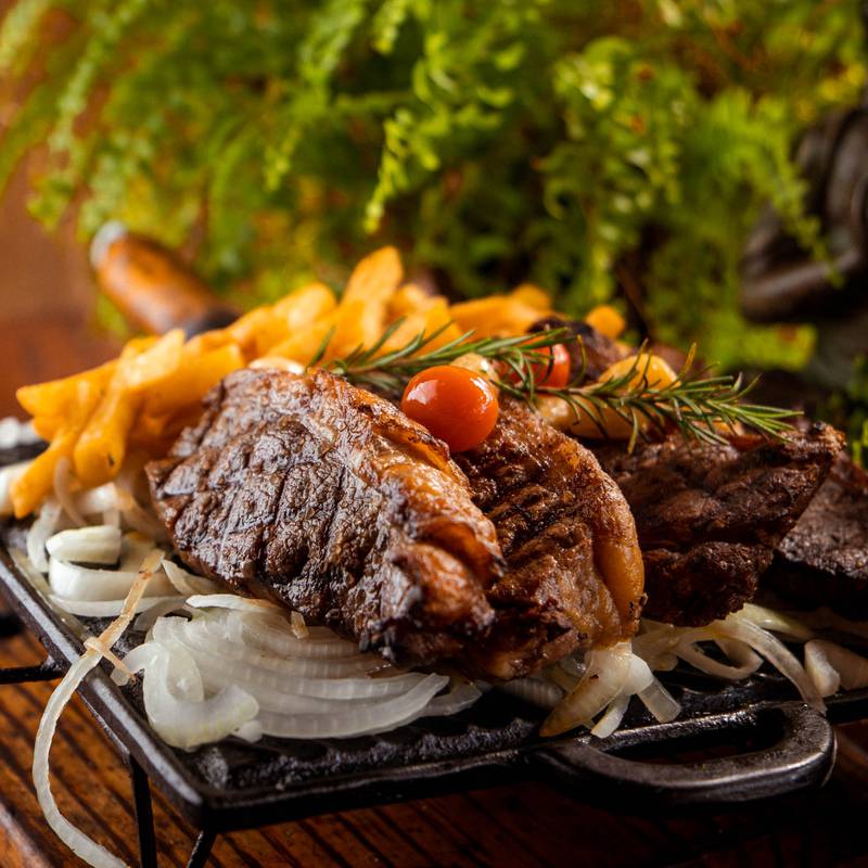 Na compra desse steak você tem direito a dois acompanhamentos .